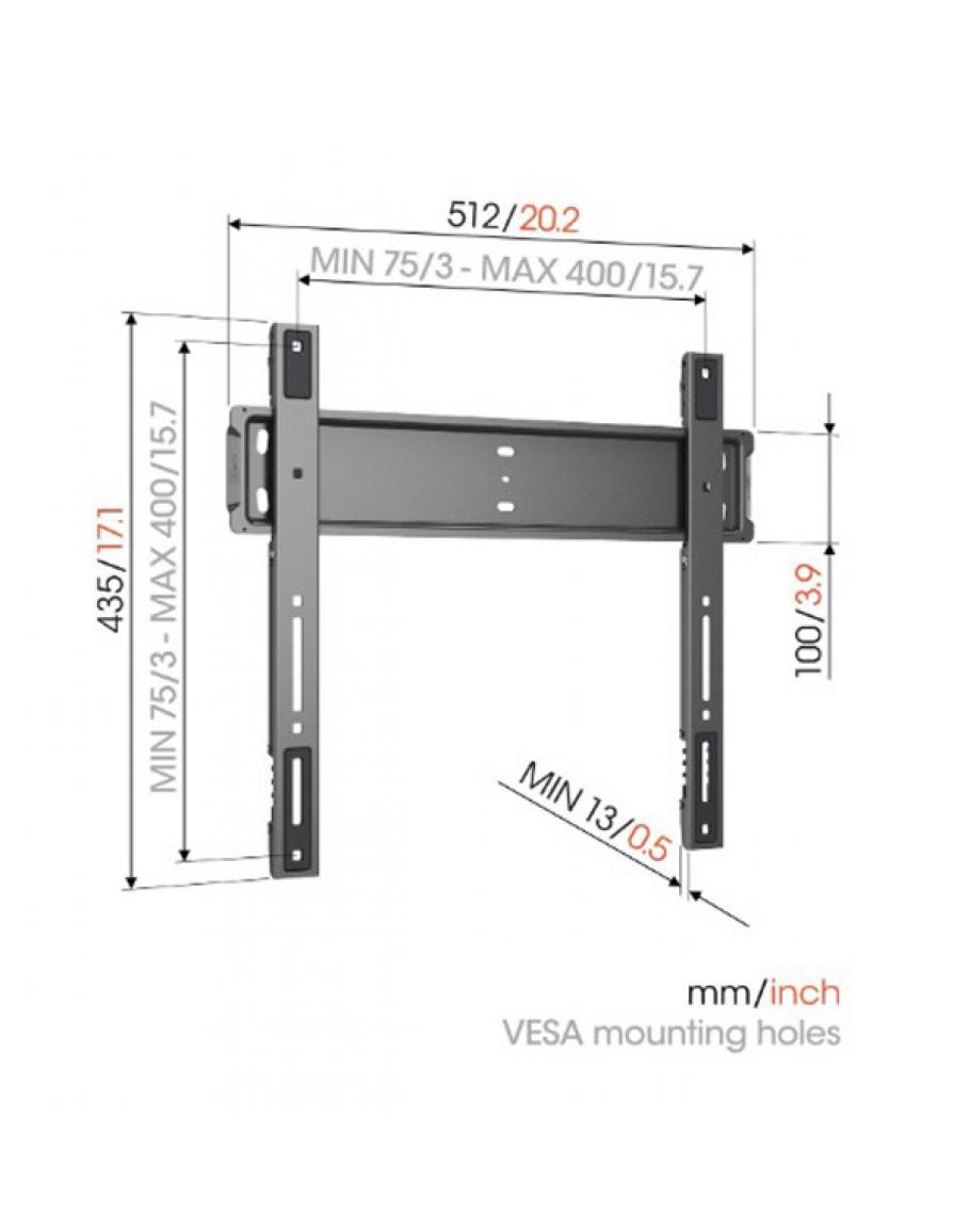 Vogel's stenski nosilec za TV sprejemnike z diagonalo od 101 cm do 214 cm. TV sprejemnik mora imeti VESA standard do 400 × 400 mm. Idealen za pritrditev vaših TV sprejemnikov na zid. Oddaljenost od stene je 1,3 cm, tako, da privarčujete s prostorom.